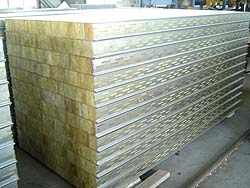本公司在岩棉彩钢板传统的基础上,开发了冲孔式岩彩钢板,专门为烘房、电动窗帘、烤漆房等室内有高温作业环境需要所制作,克服了钢带传输冷媒散热的影响,能够有效地控制室内温度热量的散发,本产品板厚可制成50-150mm,有效宽度为950mm和1150mm二种板型,长度可根据客户要求定做。